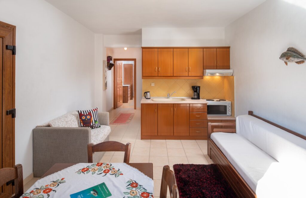 Υπάρχουν 2 διαμερίσματα αυτού του τύπου διαθέσιμα στο ισόγειο. Μπορούν άνετα να φιλοξενήσουν έως και 4 άτομα. Αποτελούνται από ένα κλειστό υπνοδωμάτιο με εσωτερική πέτρινη επένδυση, ένα μεγάλο μπάνιο και καθιστικό με κουζίνα (το πρώτο διαμέρισμα διαθέτει καναπέ για 2 άτομα και το δεύτερο διαμέρισμα διαθέτει 2 μονά κρεβάτια).
