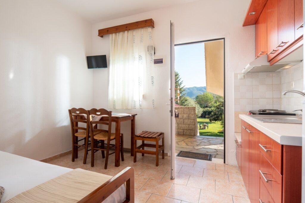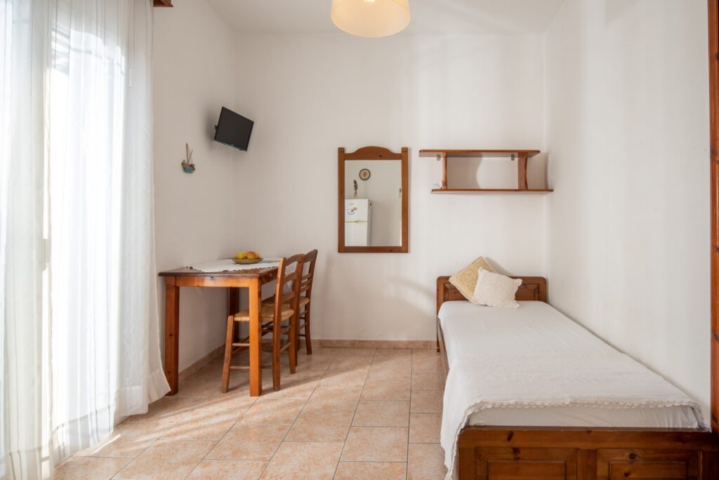 Υπάρχουν 2 διαμερίσματα αυτού του τύπου διαθέσιμα στον πρώτο όροφο. Μπορούν να φιλοξενήσουν εύκολα έως και 3 άτομα. Αποτελούνται από ένα κλειστό υπνοδωμάτιο, βεράντα με θέα, ένα μεγάλο μπάνιο, πλήρως εξοπλισμένη κουζίνα και καθιστικό με 1 μονό κρεβάτι.